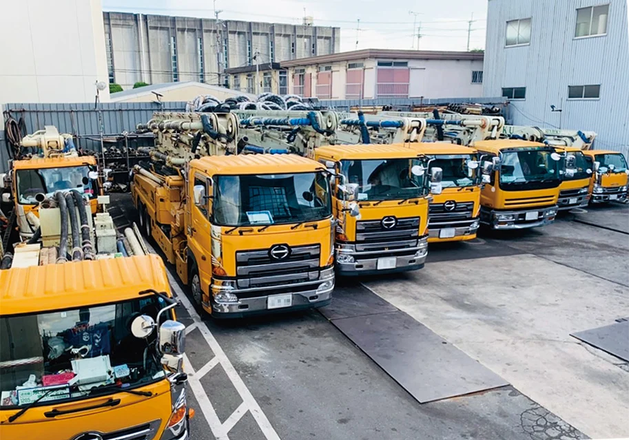 複数台のポンプ車体制により、規模や条件に応じた迅速な対応が可能。安定した施工体制を構築しています。
